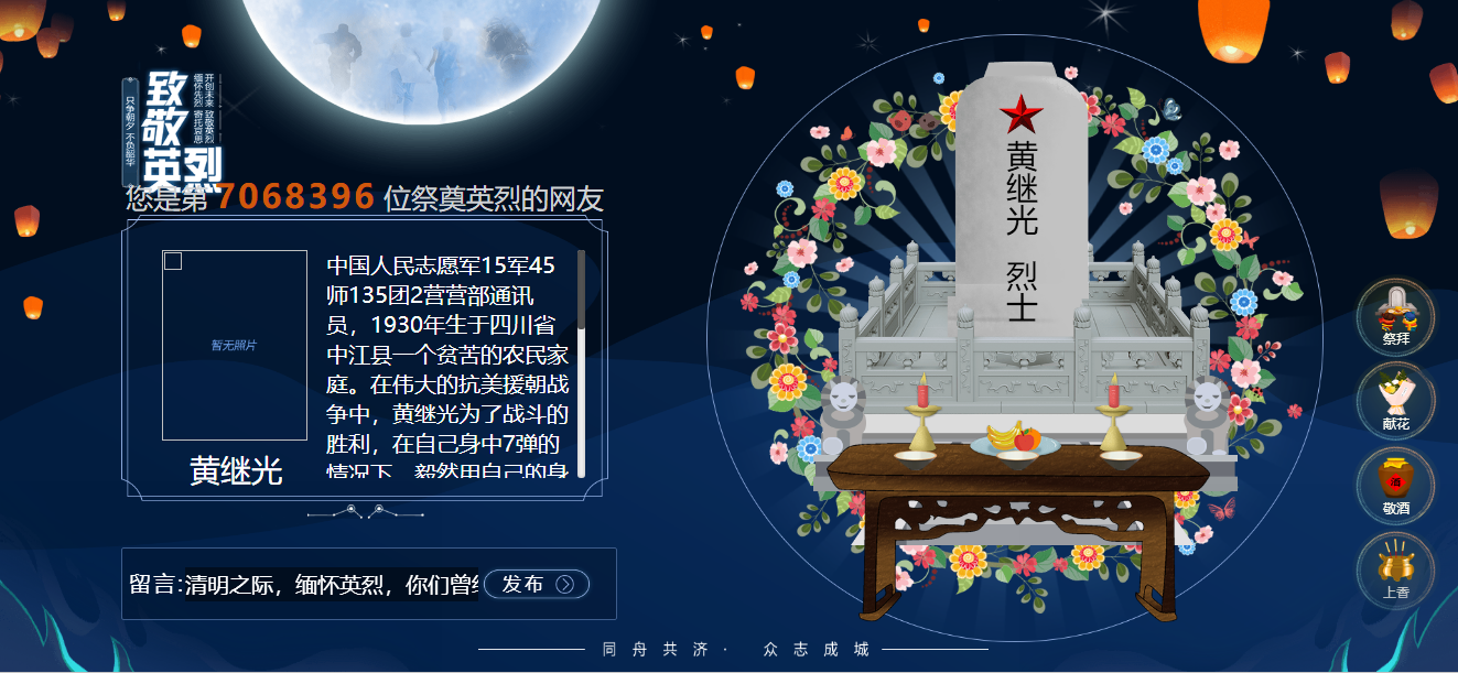 ▲通过祭扫网站寄托哀思