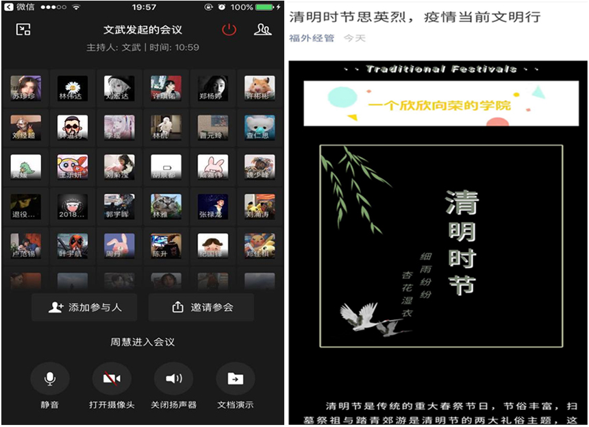 财金学院在线上开展5场清明祭英烈主题党日活动。内容包括学习英烈先进事迹、网上文明祭扫等,师生党员纷纷通过网上献花、发表留言的形式向抗疫英雄、革命先烈致敬。