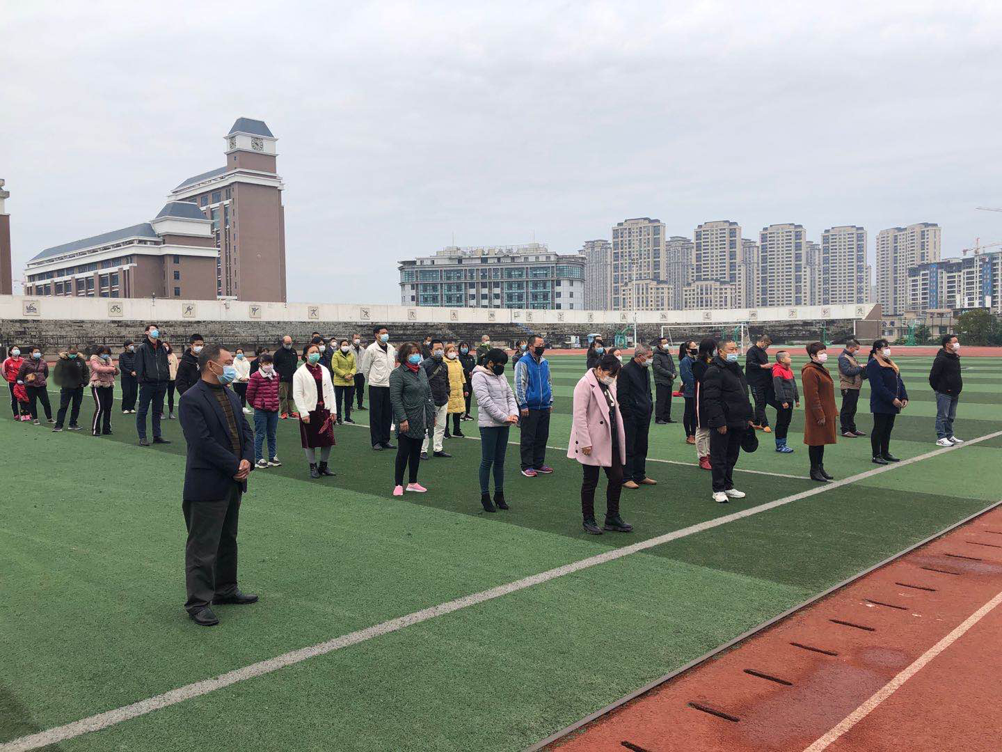 ▲留校教职工参与全国哀悼活动