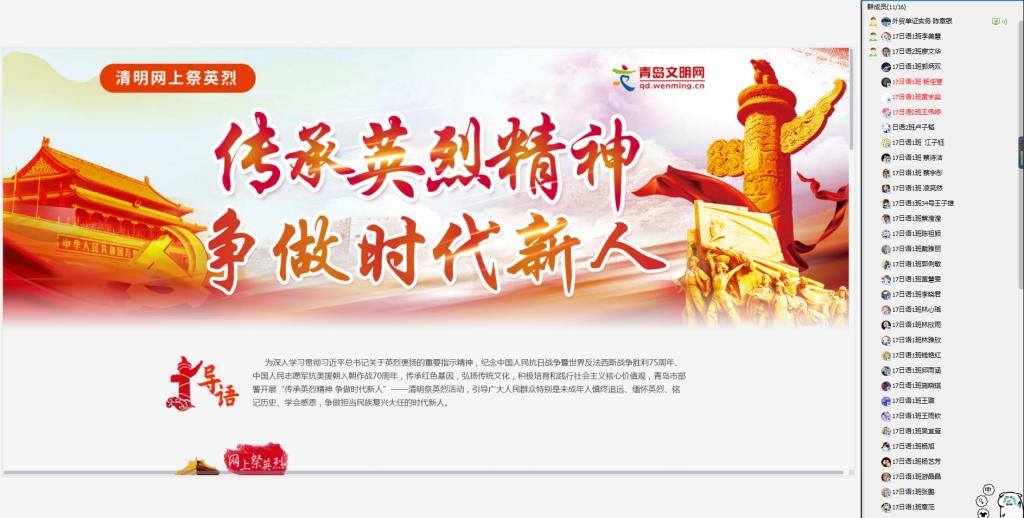 理工学院组织以“祭奠先烈英魂,传承革命遗志”为主题的网上祭英烈活动。师生党员共同阅读优秀共产党人的英雄事迹,登录祭扫网站并对此次在抗疫前线中献身的逆行者默哀。