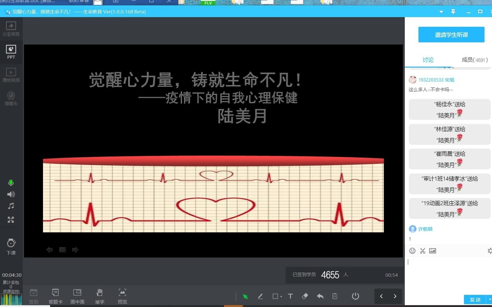 近日,我校心理咨询中心开展“觉醒心力量,铸就生命不凡”主题教育,由国家二级心理咨询师、二级婚姻家庭咨询师陆美月主讲。福外学子纷纷在线“云集合”,4600余名同学通过移动端和电脑媒体参与直播课堂,认真学习和吸收课堂内容。