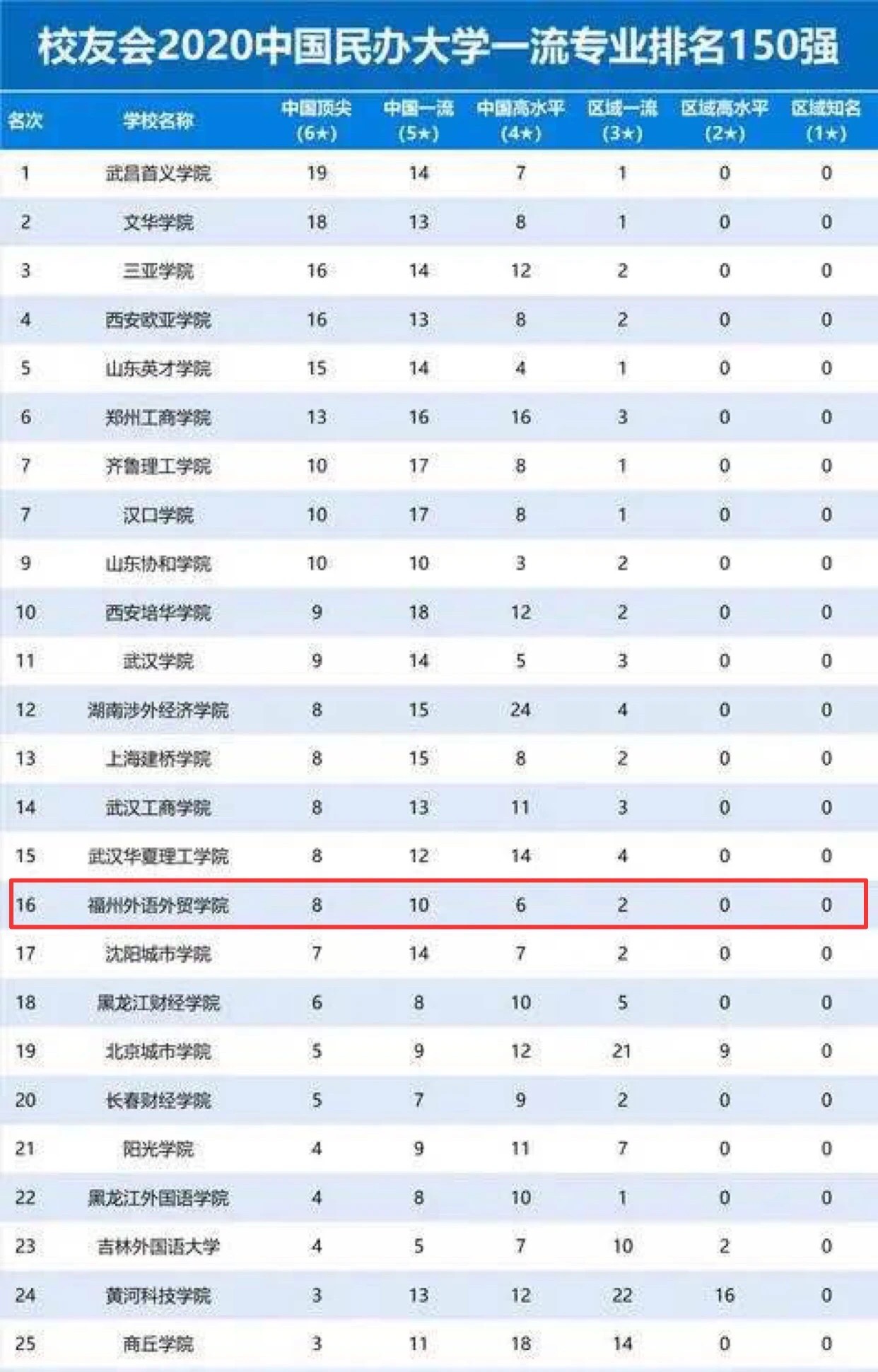 近日,艾瑞深中国校友会网最新发布《2020中国民办大学一流专业排名》,我校位列全国民办大学第16位,福建省首位。其中,翻译、信息管理与信息系统、服装与服饰设计、国际经济与贸易、动画、物流管理、金融学、会计学等8个专业荣膺2020中国六星级专业,跻身中国顶尖民办大学专业行列;法语、投资学、广播电视编导、英语、日语、工程管理、市场营销、电子商务、财务管理、土木工程等10个专业荣膺五星级专业,跻身中国一流民办大学专业行列;另有6个专业荣膺四星级专业,2个专业荣膺三星级专业。