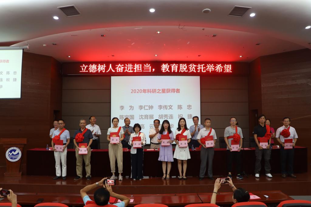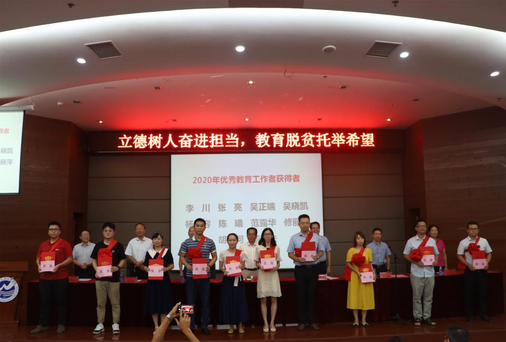 大会表彰了2019-2020学年学校教育工作先进集体、优秀教师、优秀教育工作者、教学之星、科研之星、优秀辅导员,校领导为获表彰的集体和教职工颁发奖状、发放奖金。优秀教师代表陈忠、优秀教育工作者代表吴晓凯、教学之星代表肖碧云、科研之星代表李为、优秀辅导员代表陈登宇分别分享了他们的成功经验和感悟。