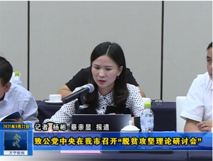 9月20日至22日,致公党中央在海南万宁召开脱贫攻坚理论研讨会。致公党中央副主席吕彩霞出席会议作重要讲话,对脱贫攻坚理论研究工作以及致公党中央理论与学习委员会下一步工作提出要求。