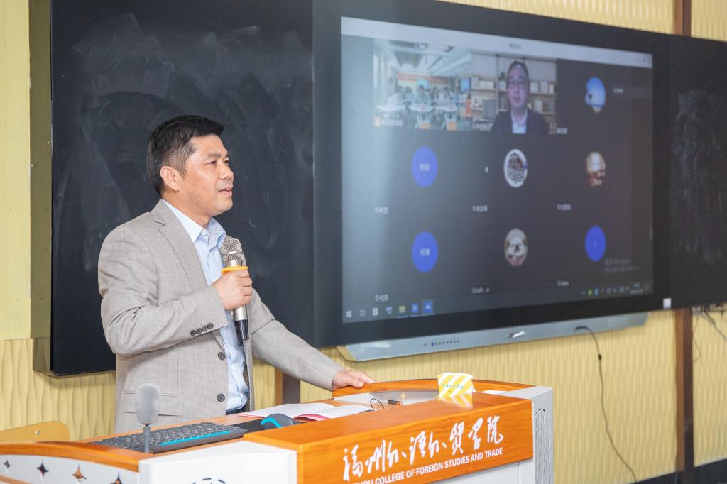 林善炜表示,习近平总书记在闽工作期间强调扩大对外开放要突出区域特色,强调对外开放要加强投资环境建设,强调对台工作是对外开放的重要组成部分。福建应坚持习近平总书记提出的开放发展道路,坚持“引进来”与“走出去”相结合,坚持经贸合作与人文交流并重,在改革开放的道路上不懈探索与实践。辽宁大学国际经济政治学院院长刘文革教授在线分享了题为《国际政治经济学学科体系构建的中国特色与现实方向》的主题演讲,介绍了“新”国际政治经济学研究的范畴,指出发展该学科的目的与意义,为我国对外改革开放的发展奠定“新”理论基础。