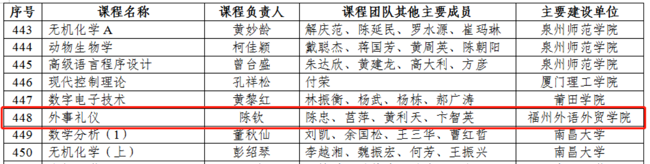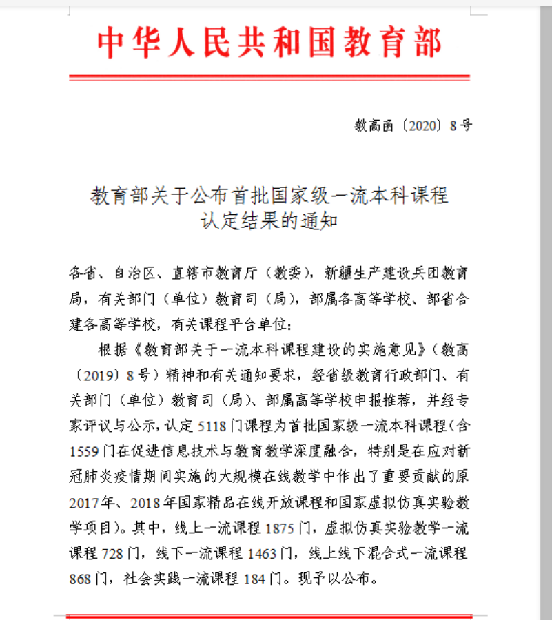 近日教育部发布《关于公布首批国家级一流本科课程认定结果的通知》(教高函〔2020〕8号),我校杨俊惠老师的《英语国家社会与文化》获国家级线下一流课程认定、陈钦老师的《外事礼仪》国家级线上线下混合式一流课程认定。