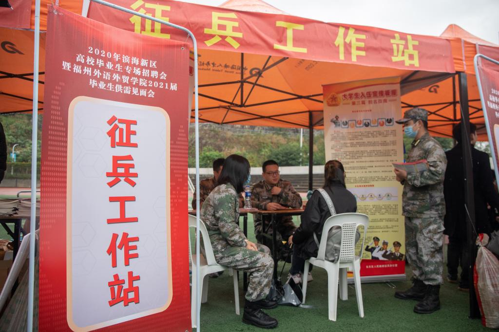 就业服务温暖。在提供就业岗位的同时,校毕业生就业指导中心联合中国海峡人才市场、福建人才集团、华图教育开展“最暖就业季”就业指导在身边系列活动。活动在招聘会现场设立“简历门诊”“资深HR面对面”“助力公考加油站”“就业政策咨询”“长乐滨海新区引才政策宣传”等多个服务站,为应届毕业生现场答疑解惑。学校还联合长乐区武装部,在现场开展2021届毕业生征兵宣传咨询活动,武装部工作人员现场普及国防知识,向有意愿投身国防建设的毕业生们介绍兵役政策。