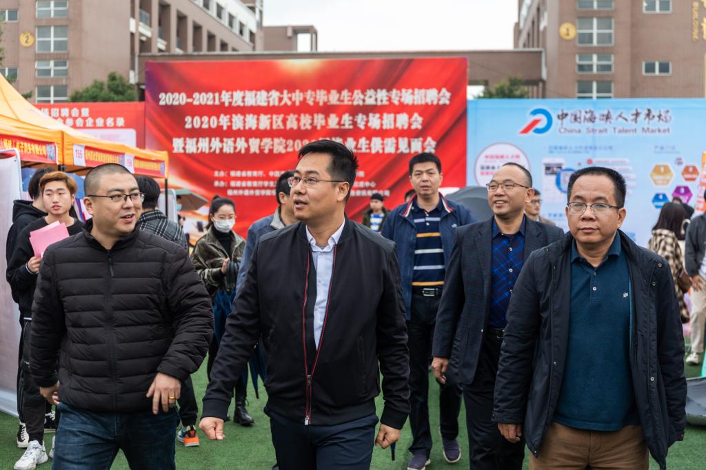 省教育厅学生工作处处长杨振坦,中国海峡人才市场人才交流中心副处长卓炳昌,省高校毕业生就业创业促进会副会长汤锐华等领导在校领导黄建平、陈炳钦、徐国立等的陪同下亲临招聘会现场指导工作,了解我校毕业生就业工作总体情况、疫情防控期间促进毕业生就业举措,并与用人单位、应聘学生亲切交谈,了解招聘情况。