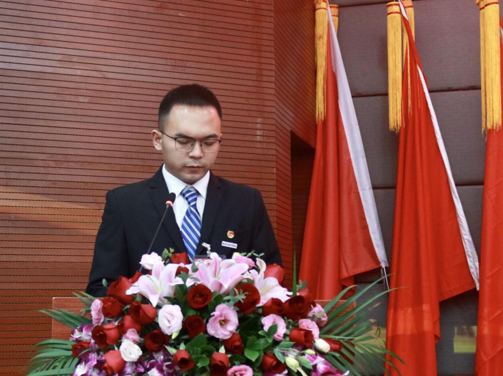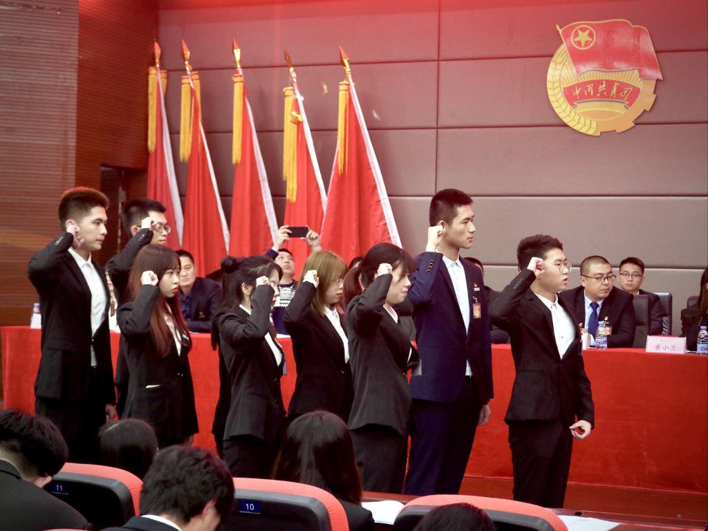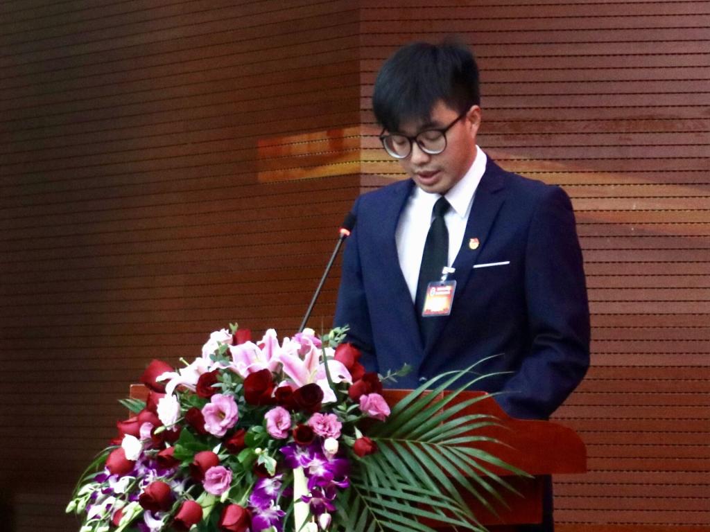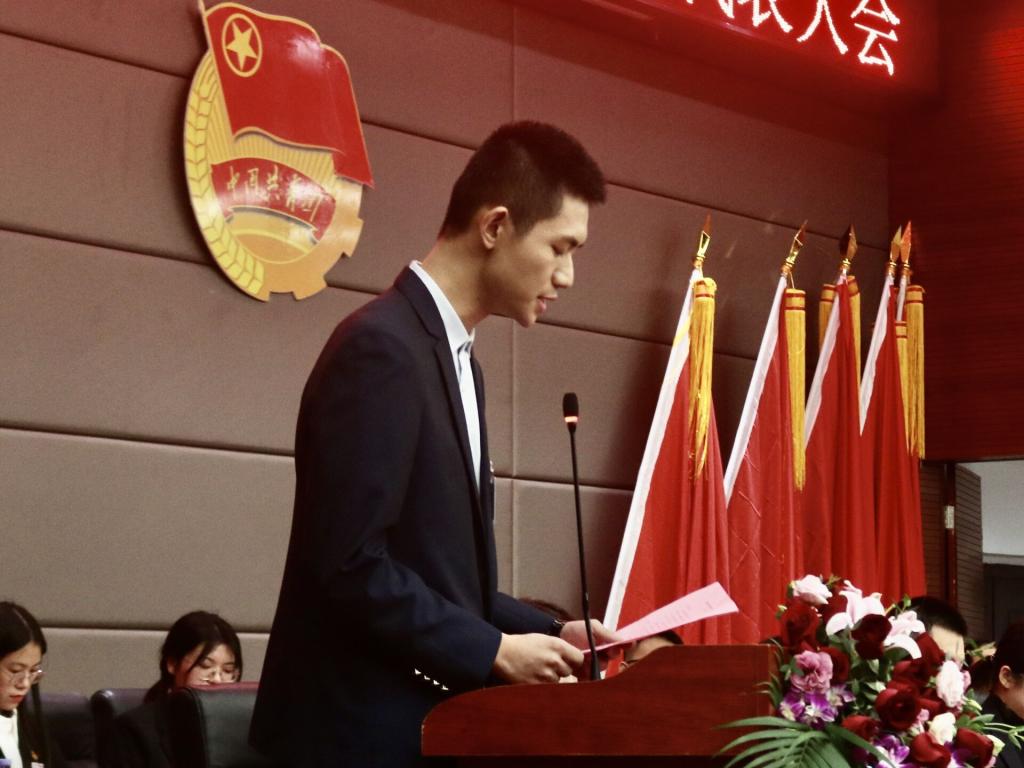 学生代表丁文荣带领新当选学代会委员宣誓