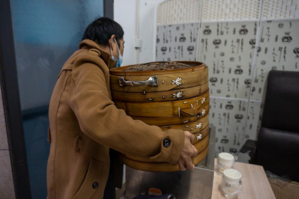 只见下班准备回家的教职工们正有序地领取由学校免费供应的“暖冬点心”。手捧着温暖精致的点心,教职工们的脸上露出幸福的笑容。