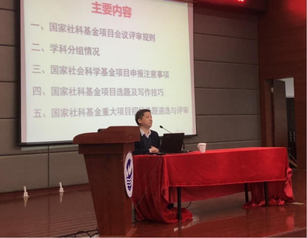 讲座中,王应明从国家社科基金项目会议评审规则、申报注意事项、选题及写作技巧,国家社科基金重大项目招标选题遴选与评审等方面进行了深度分享。会议现场氛围热烈,参会教师均表示受益匪浅。