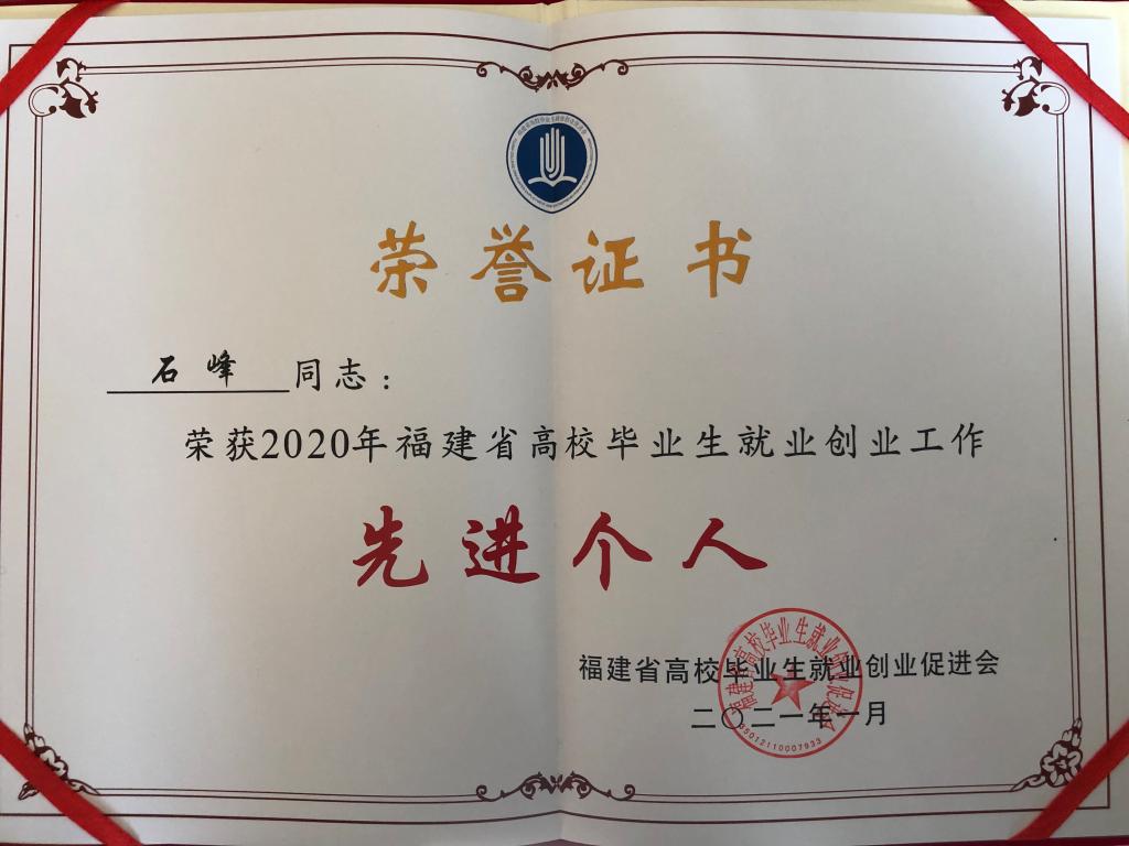 近日,福建省教育厅、福建省人社厅联合召开2021届高校毕业生就业创业推进会。会议表彰了2020年我省高校毕业生就业创业工作先进单位和先进个人,我校荣获“先进单位”称号,学生发展中心石峰同志荣获“先进个人”称号。
