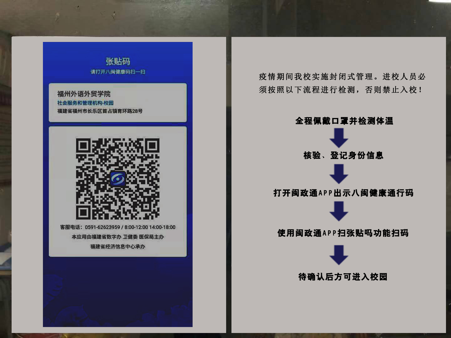 目前,我校已将“张贴码”粘贴在校园入口的醒目位置,并完成学校值守安保人员培训。所有人员进校需扫描“张贴码”通行。