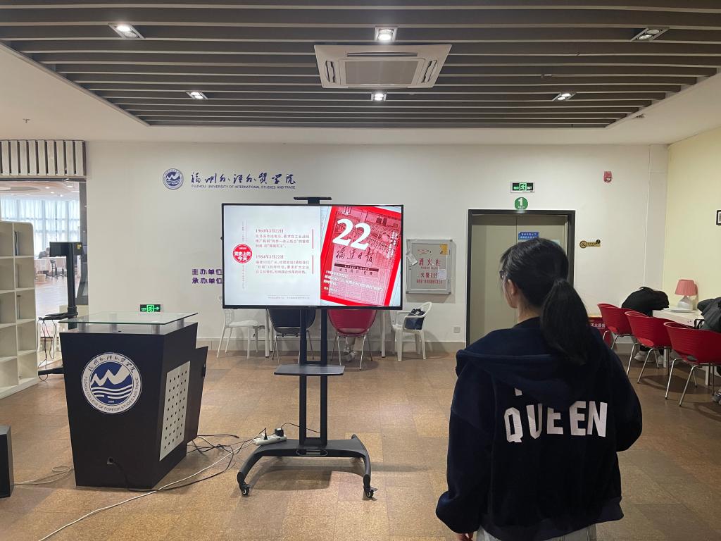 循环播放“党史上的今天”主题日志式海报,积极营造学习党史教育的浓厚氛围,倡导全校师生利用碎片化时间持续深入学习党史。