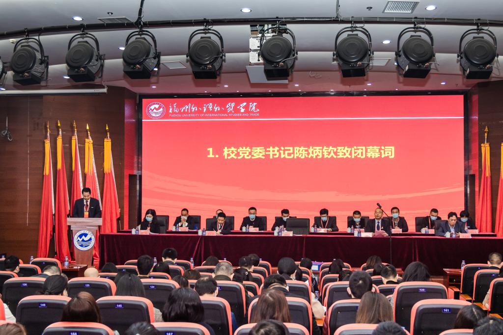 党委书记陈炳钦致闭幕词,他指出各位代表围绕学校事业发展和工会、教代会工作,共商学校发展大计,积极建言献策,反映了广大教职工的呼声。大会达到了统一思想、开拓思路、振奋精神、凝聚力量的目的,提高了教职工参与学校管理的意识和能力,必将对新时代学校各项事业的发展产生积极而重要的影响。他对落实“双代会”精神、做好今年工作提出三点意见:聚焦高质量发展,开启学校发展新征程;聚焦服务师生发展,开创和谐校园新局面;聚焦学校民主建设,增强事业发展新动力。