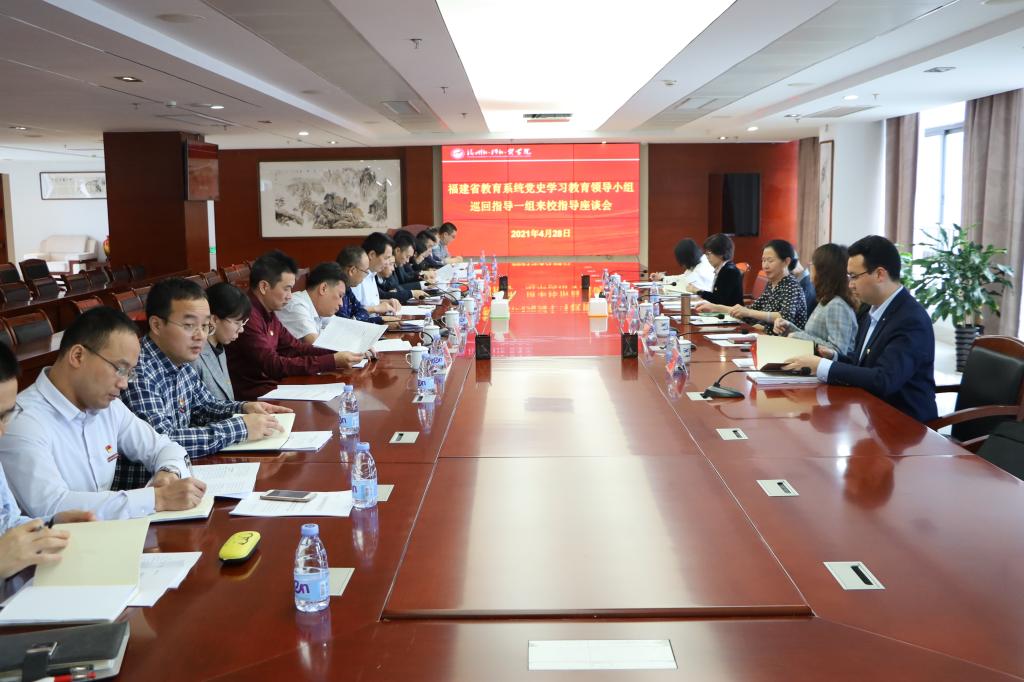 4月28日,福建省教育系统党史学习教育领导小组巡回指导一组李金莲组长一行赴我校指导党史学习教育工作。校党委书记陈炳钦汇报了我校开展党史学习教育工作情况,并作表态发言。