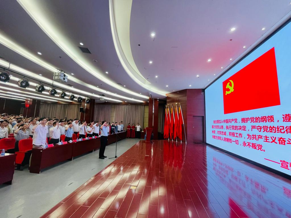 “我志愿加入中国共产党,拥护党的纲领,遵守党的章程,履行党员义务,执行党的决定……”陈炳钦带领师生党员面向党旗庄重地举起右拳,重温入党誓词。