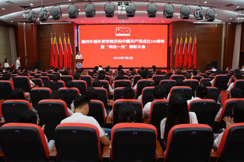 7月1日,我校庆祝中国共产党成立100周年暨“两优一先”表彰大会召开,隆重表彰我校优秀共产党员、优秀党务工作者和先进基层党组织。校领导陈炳钦、季祖强、黄跃舟等,党委有关部门负责同志,各分党委、直属支部书记,师生党员代表等300余人参加会议。