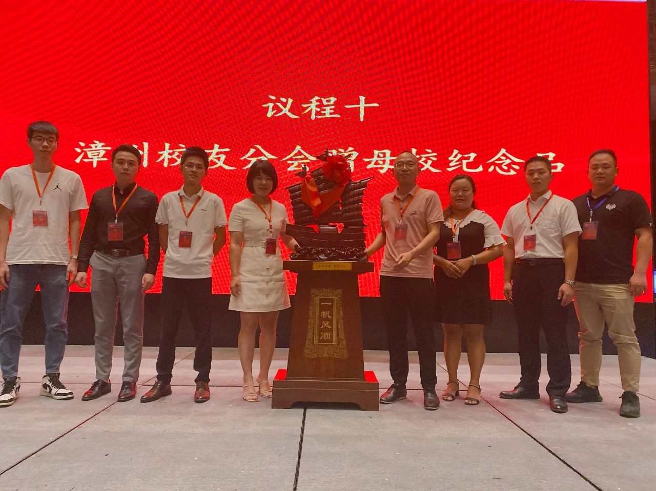 泉州校友分会会长、2010届校友李荣聪代表校友会泉州分会上台致贺词,对漳州校友分会的成立表示热烈祝贺。漳州校友分会新当选会长陈小燕上台讲话,她表示,漳州校友分会的成立,为广大漳州校友搭建了一个增进友谊、联系交流、反哺母校、回报社会的平台,这是一个良好的开端和成功的起步。她倡议校友们继续关注和支持母校的发展,通过校友会这个纽带,增进母校与校友、校友与校友之间的情谊,通过整合各方资源,共同进步。随后,漳州校友分会理事会成员向母校赠予纪念品,并赠言“大爱佑福 善泽八方”,祝福母校教育事业再创新高。