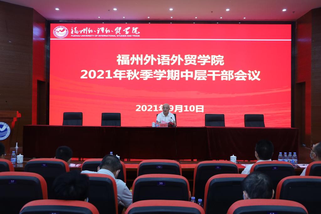 9月10日,我校召开2021年秋季学期中层干部会议。校领导许明、黄建平、陈炳钦、徐国立、季祖强出席会议。行政机关、教辅机构、各学院副职以上干部参加会议。