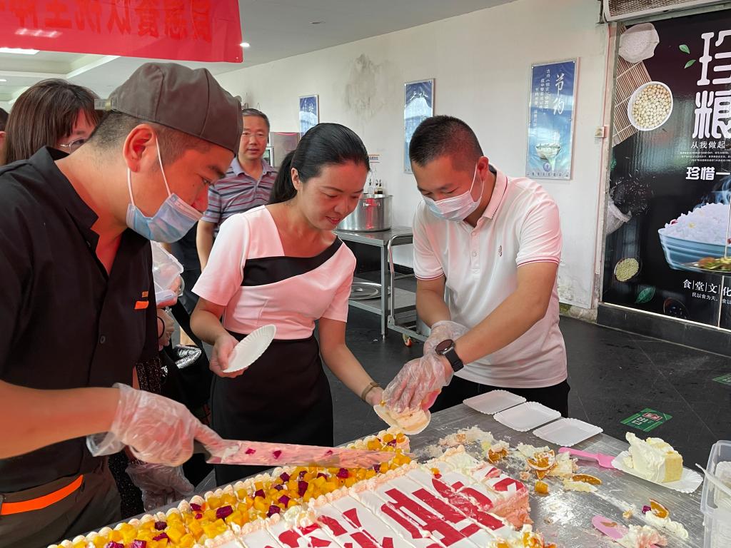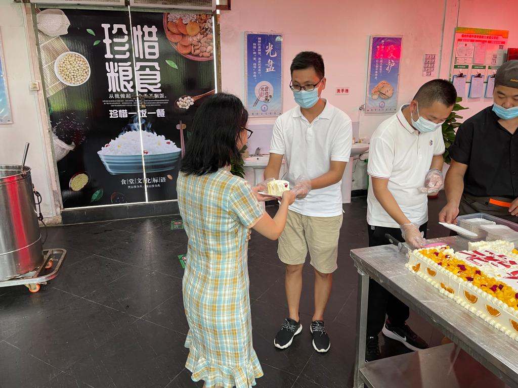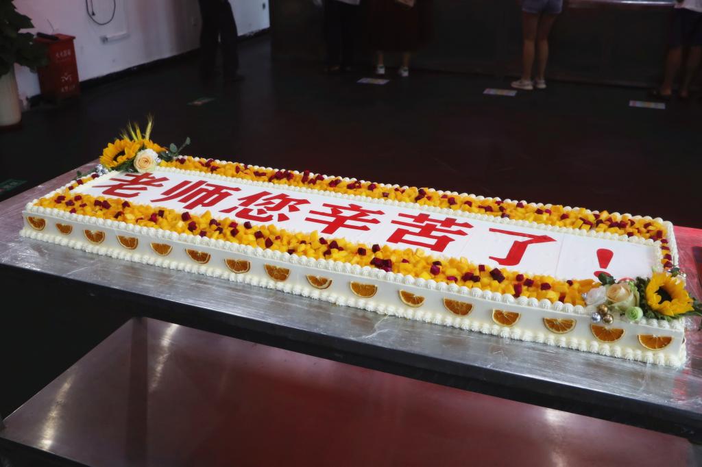 教工食堂内,不少老师拿出手机拍照,原来学校为教职工们准备了节日蛋糕,蛋糕上“老师您辛苦了”几个字格外夺目,忙碌过后前往食堂的教职工看到偌大的蛋糕,既惊喜又感动,温暖甜蜜涌上心头。