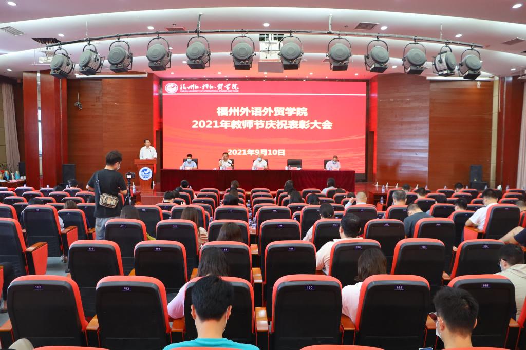 2021年教师节表彰大会在学术报告厅内举行。校领导许明、黄建平、陈炳钦、徐国立、季祖强出席会议,各单位副职以上干部、全体获奖教职员工、教师代表等参加会议。
