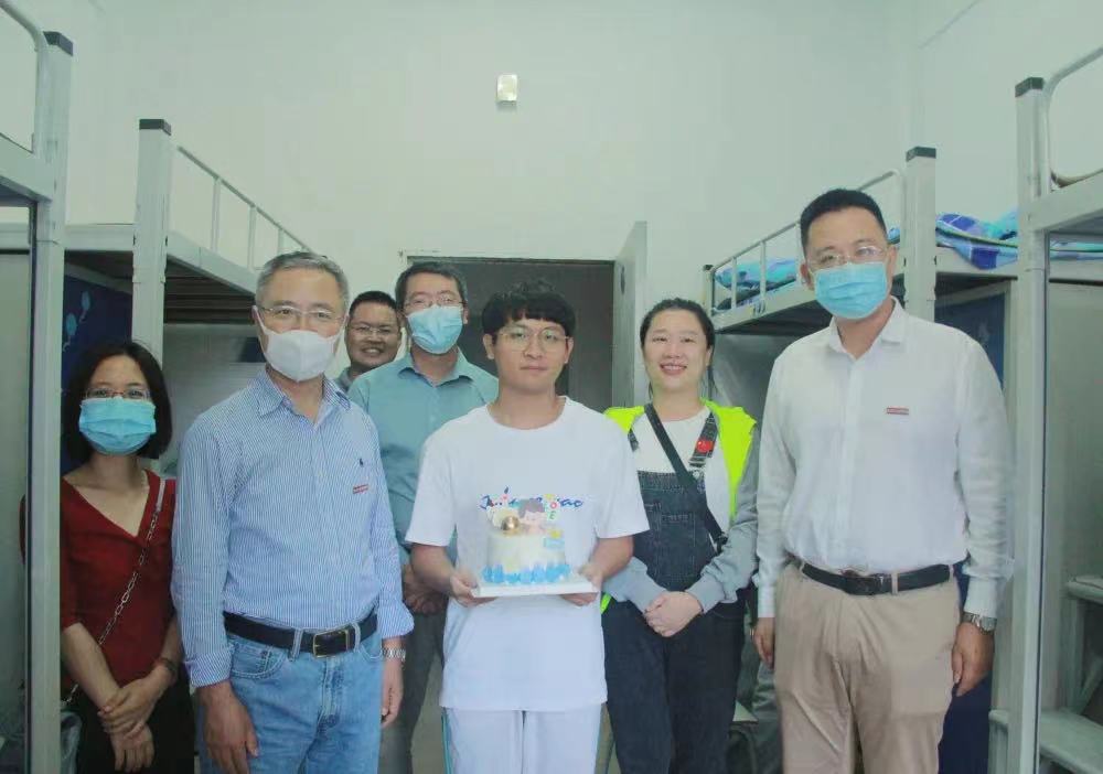 学校的师长们来到宿舍区域,看望安顿好的新生,慰问参与迎新工作的志愿者们。教育学院还为报到当日生日的新生举行了集体生日,一场温情欢乐的“破冰”活动,迅速拉近了新生和师长们之间的距离。