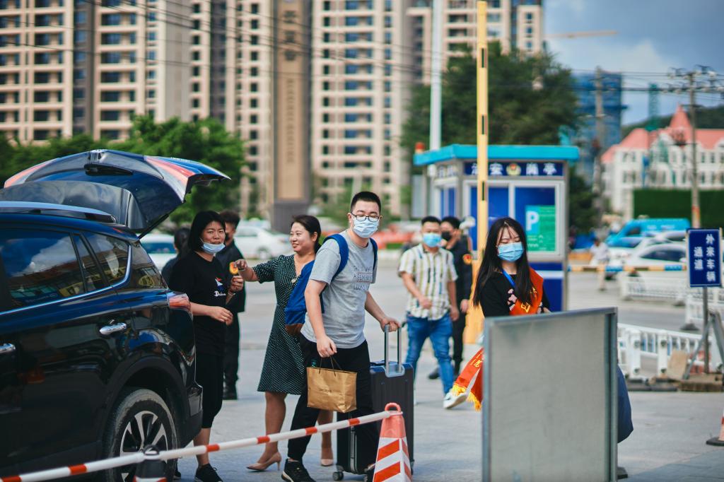 学校的迎新志愿者们一大早就前往动车站等候来校新生,只为给来到新环境的同学们带来家的温暖。自驾来校的家长和新生刚一下车,迎新志愿者就上前给予最热烈的问候,他们仔细地询问新生的专业,耐心地解答新生及家长们的问题,并做好引导。