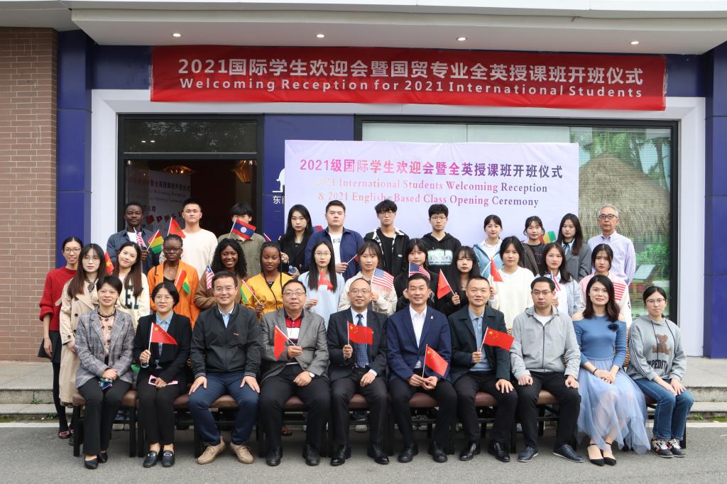 校党委副书记、副校长徐国立代表全校师生向2021级国际学生表示热烈欢迎,他介绍了学校开展国际教育的进程以及全英授课班的办学成效。他希望通过这一教学创新,吸引更多的国际学生了解中国,为两国文化交流做贡献;希望来校学习的国际学生,能够充分利用在中国学习的时间,了解中国,学习中国的文化,思考中国飞速发展的原因,掌握跨文化交流的能力和国际贸易方面的知识和技能,将来为本国经济建设服务。希望培养更多的中国学生走向世界,进一步提升我校的国际化办学水平,进一步体现学校“外+”办学特色,共建创新包容的开放型世界经济,开创人类更加美好的未来。