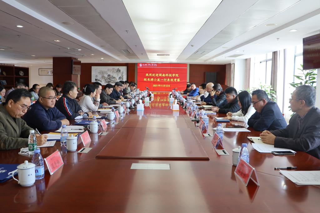 11月12日,闽南科技学院校长游小波一行到我校考察交流,校领导许明、黄建平等接待了游小波一行。