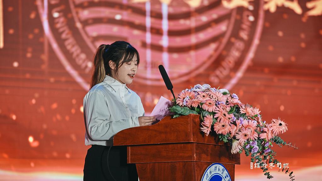 国家奖学金及校长特别奖学金获得者程曦代表获奖学生上台分享自己的学习感悟,她结合自身奋斗历程,从“理想为帆,不惧远航”“奋斗为桨,不畏风浪”“创新为刃,划破茧印”等三个方面进行了分享,勉励同学们志存高远,勇做时代的弄潮儿,在实现中国梦的伟大实践中放飞青春梦想,以行动诠释新时代青年的责任与担当。