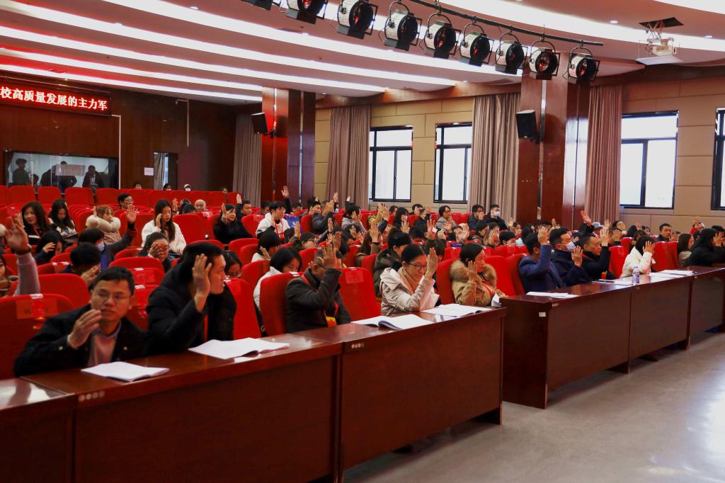 12月31日,我校第三届教职工代表大会暨第五届工会会员代表大会第四次会议隆重举行。校领导许明、陈炳钦、黄建平、徐国立、季祖强、黄跃舟,校工会老领导刘雨彬,教代会、工代会正式代表及列席代表200余人出席会议。
