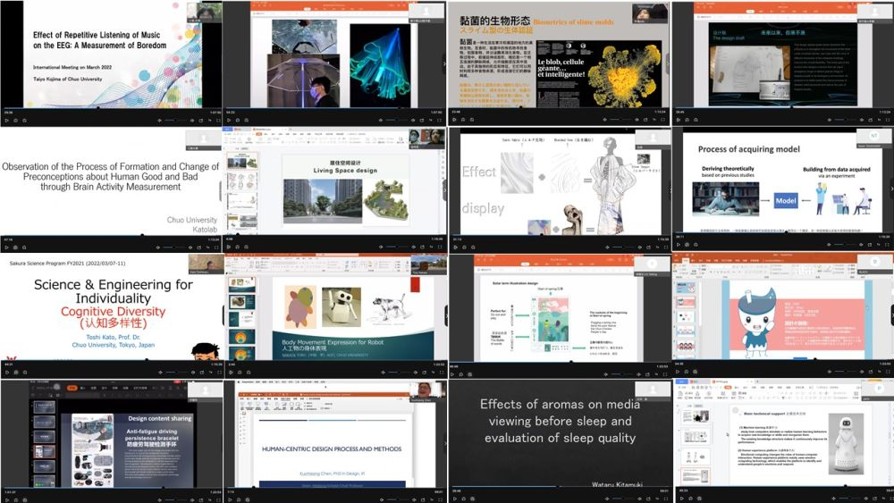 在该学术交流会上,我校产品设计、环境设计、动画、服装与服饰设计、数字媒体艺术、视觉传达等专业的同学对相关专业新文科建设阶段性成果——“人性化设计”创意与日本高校的师生们进行交流。日本中央大学理工学院同学就基于人类友好环境理念的人机交互设计项目相关实验研究情况进行了介绍。