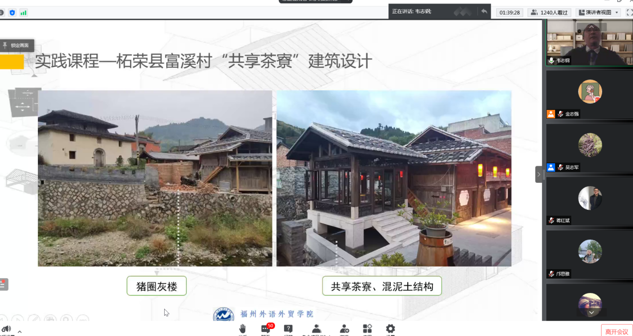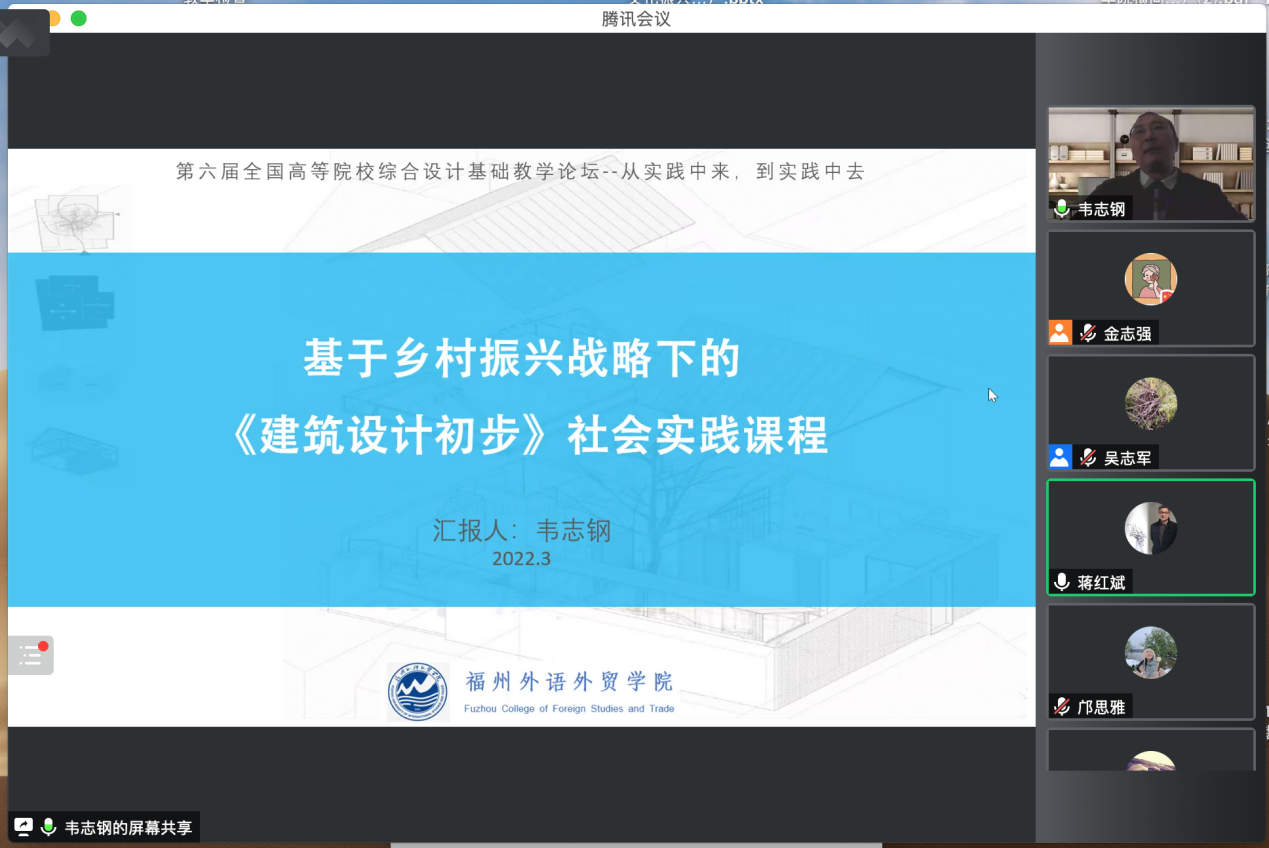 我校艺术与设计学院产品设计系主任韦志钢副教授应邀作为嘉宾参加该论坛并就“基于乡村振兴战略下的《建筑设计初步》社会实践课程”作主题发言。他指出,高校学生参与新农村建设,聚焦乡村振兴实践要把握好“五个间”,即“区域间平衡,城乡间发展,农业农村生产生活间关系,政府、市场、农民主体间联系,部门间协作”。他还就实践教学角度提出了“以使用者为中心的实践教学法”的人才培养新方式。