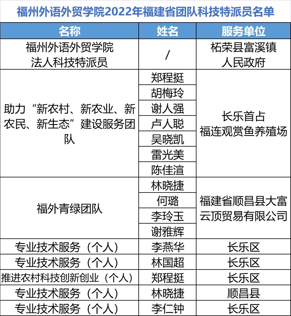 日前,福建省科技特派员工作联席会议办公室印发《关于公布2022年福建省科技特派员名单的通知》,我校获选2022年福建省法人科技特派员1个、团队科技特派员2个和个人科技特派员5名,共有17名教师入选。
