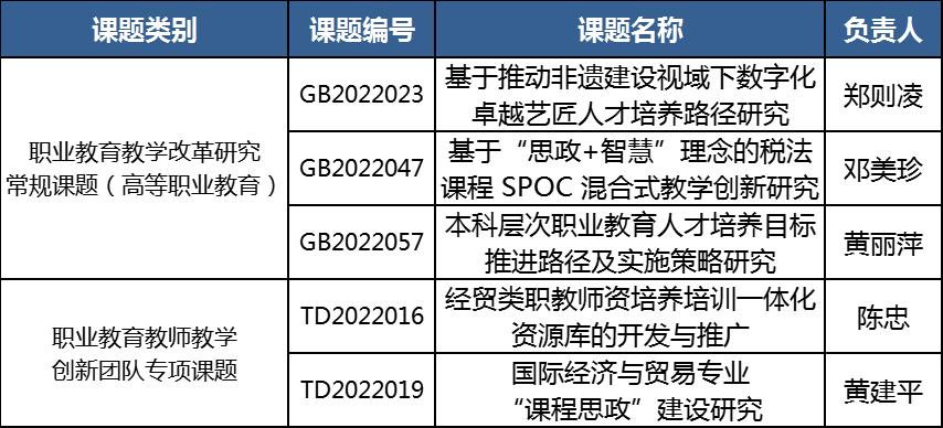 近日,福建省职业技术教育中心公布2022年福建省职业教育研究课题立项结果。经专家评审,确定2022年福建省职业教育研究课题立项260项,我校郑则凌等5位教师课题成功入选,获批总数居全省本科院校首位。