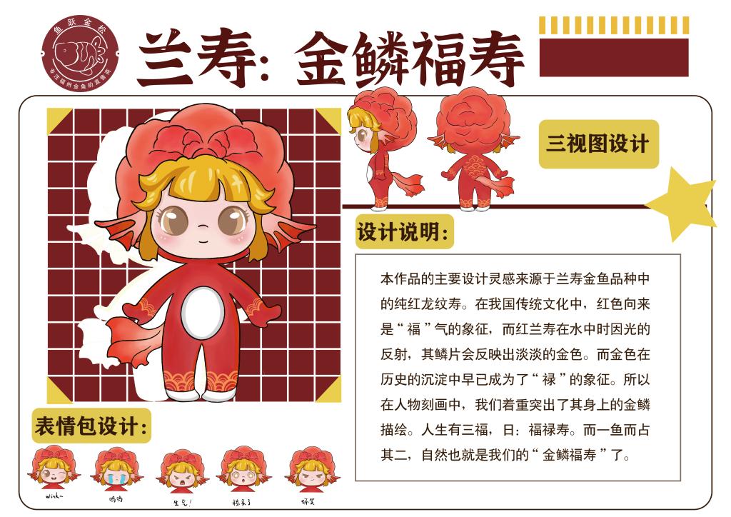 今年6月,“鱼跃金松”团队承办的“金鱼动漫梦工厂”2022年渔业品牌主题活动亮相中国福州渔博会。团队为长乐福连金鱼养殖场打造的“金鱼IP”项目在海峡国际会展中心首次与大家见面,该项目在论证会中顺利获得通过并受到一致好评。同时,由团队设计、搭载该“金鱼IP”的4套80余件金鱼特色文创产品,也成功在展会220家竞争企业中获得认可,斩获特邀企业荣誉称号。福外师生用智慧赋能产业,为长乐及福州的“福鱼文化”发展注入新的活力。