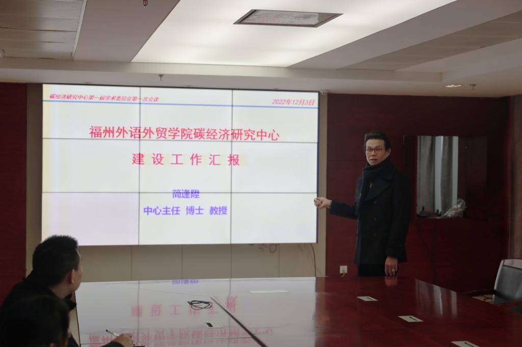 中心主任简逢陞教授汇报我校碳经济研究中心建设方案和未来三年建设规划。学术委员们就中心的建设与发展进行了质询、论证,充分肯定中心的前期建设成效,并对中心目前存在的问题和后续发展提出了建议和意见。
