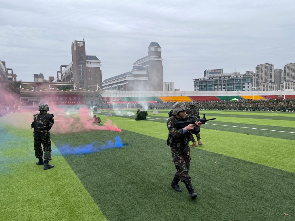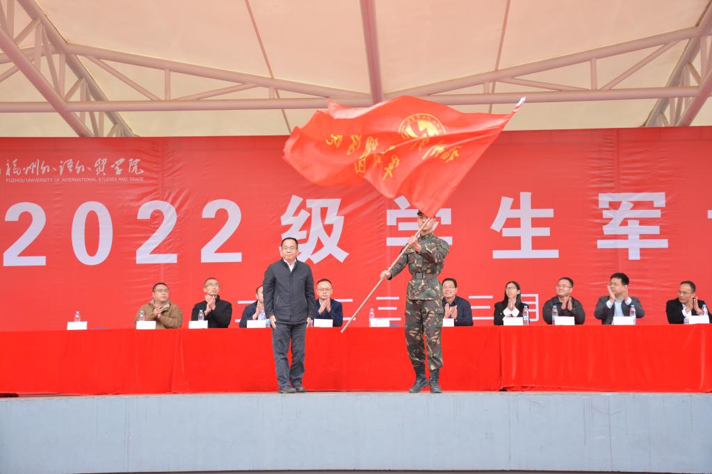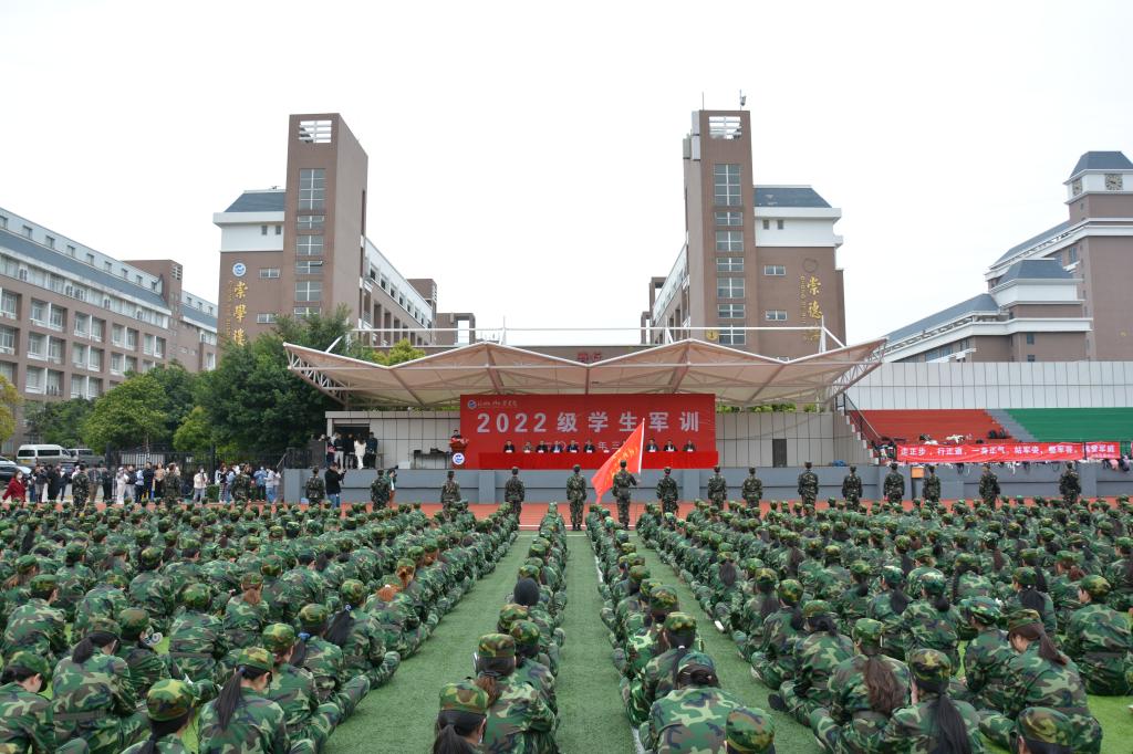 “军旗所指,一往无前”黄建平为军训团授旗。“按计划进行!”随着开训命令发出,2022级学生军训正式拉开序幕。