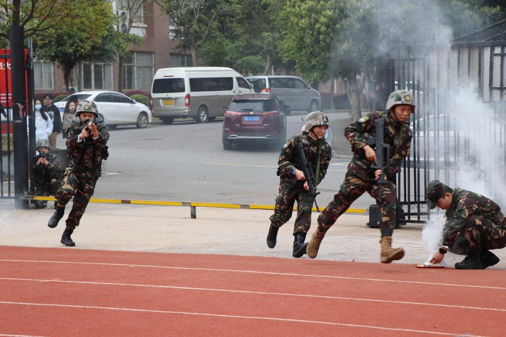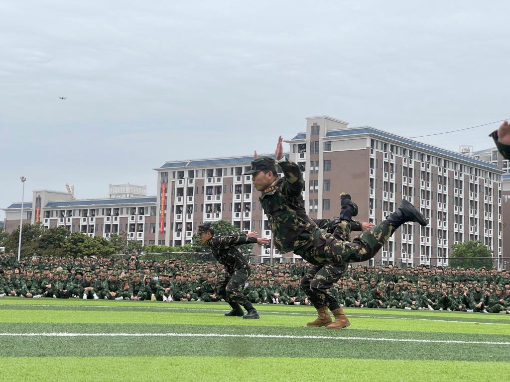 动员大会后,军训团教官们还为大家带来了热血的战术演练,威武的军容、迅猛的动作引得现场阵阵掌声。