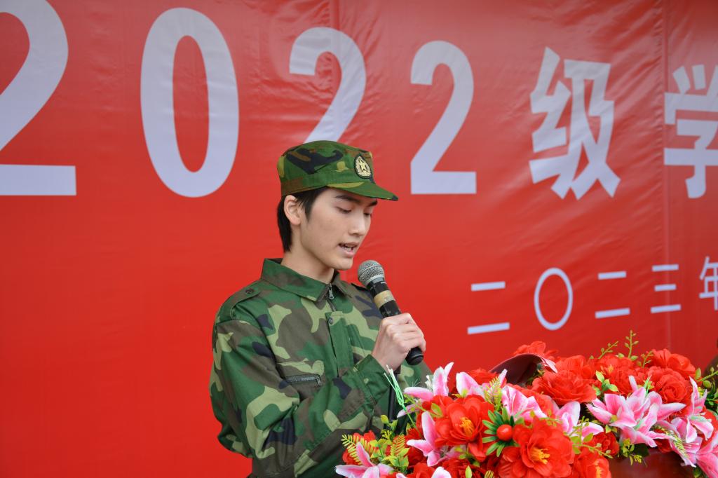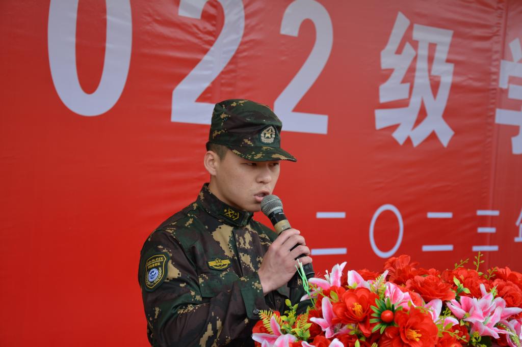 教育学院2022级学生李治铭代表参训学生发言。他表示军训是大学里的重要一课,将在训练中做到坚定意志,展现青年志气;挑战自我,锻造青年骨气;心怀感恩,传承青年大爱。