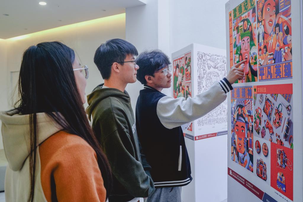 在学校艺术大厅,师生们通过雷锋精神优秀创意设计作品展感受雷锋精神。此次展出得到米兰设计周-中国高校设计学科师生优秀作品展组委会和雷锋精神国际公益海报设计双年展组委会大力支持,展品包括我校师生一等奖设计作品在内的百余幅作品。