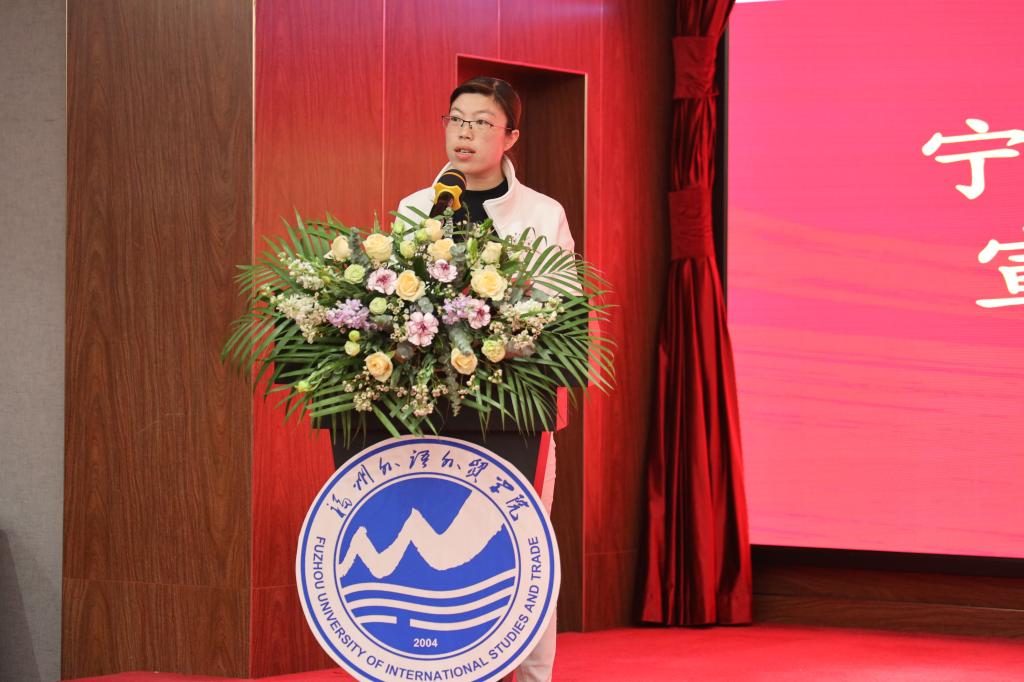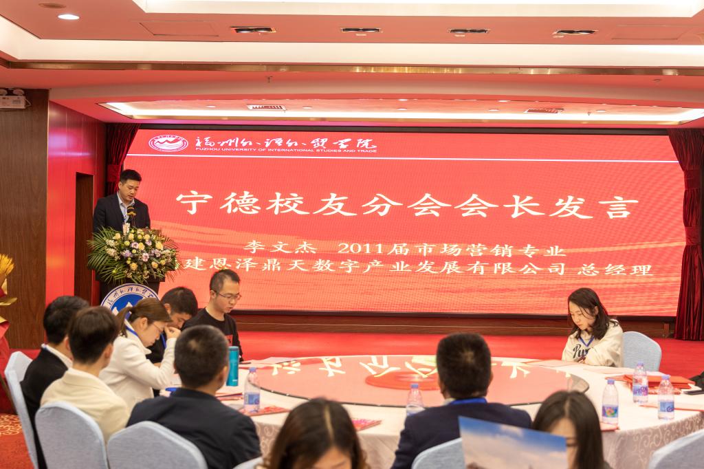 泉州校友分会会长、2010届校友李荣聪,莆田校友分会副会长、2017届校友朱晶晶分别代表泉州、莆田校友分会上台致贺词,对宁德校友分会的成立表示热烈祝贺。
