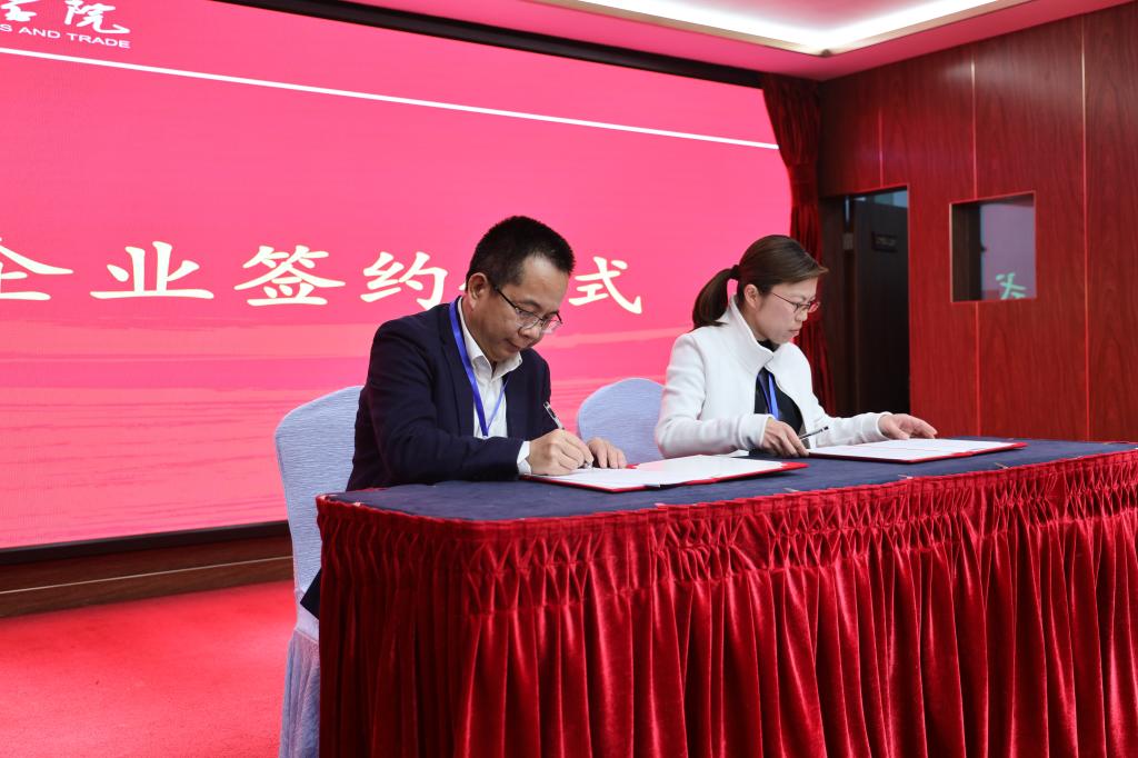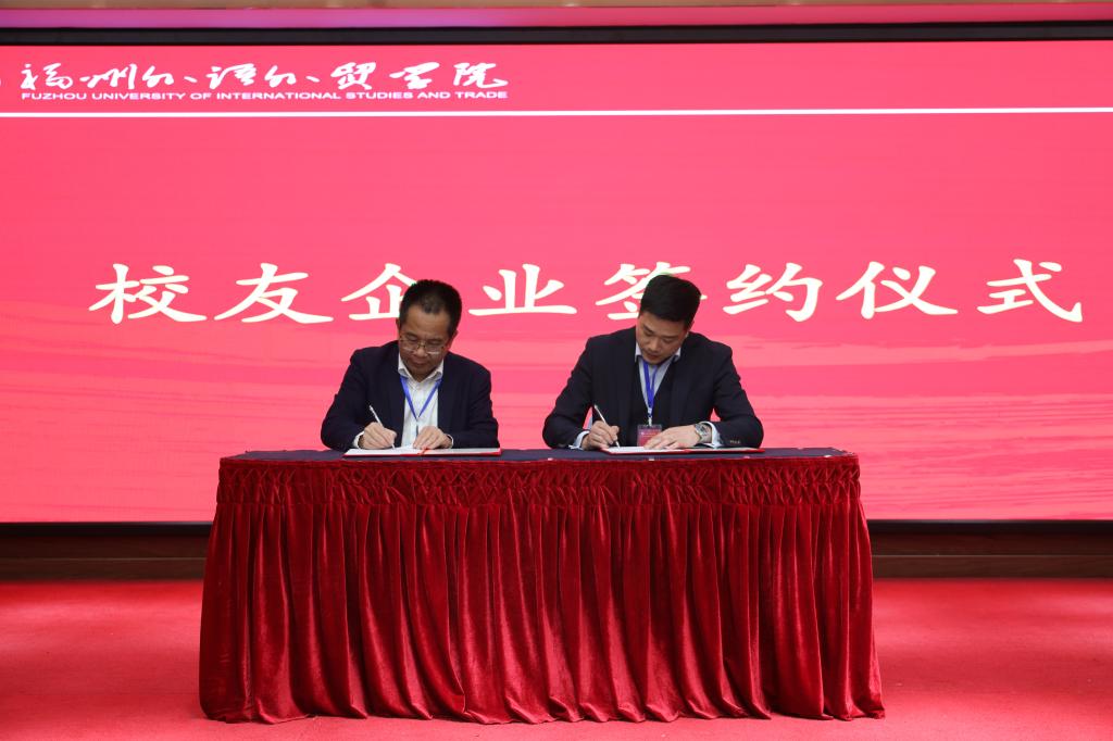 黄建平代表学校与福建省福鼎市恩泽鼎天数字产业有限公司、古田县鑫峰生物科技有限公司两家校友企业签订了校企合作协议。