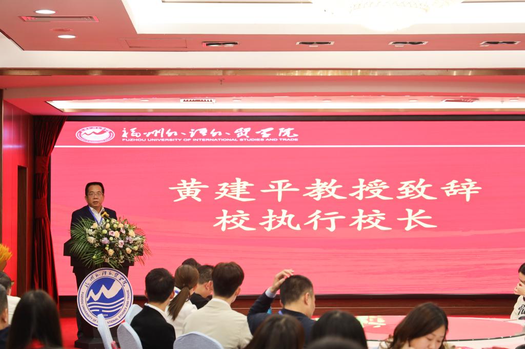 黄建平在大会上致辞,他代表学校董事会、党政领导及全体师生向宁德校友分会的成立表示热烈祝贺,向多年来持续关心和支持母校教育事业的宁德校友表示最诚挚的感谢。他向校友们传达了我校在人才培养、科学研究、社会服务等各方面取得的显著成就。他表示,校友是学校宝贵的财富,希望宁德校友会继续凝聚广大校友力量,为校友发展铺路搭桥;认真履行工作职责,在理事会的带领下,组织开展好各项活动;通过校友会平台紧密交流,互通有无,为学校发展建设添砖加瓦。他还盛情邀请校友们19周年校庆时相聚母校探师访友,共商福外发展大计。