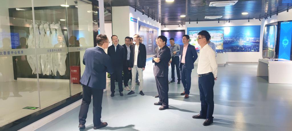 刘权一行实地参观了我校校情展示馆、大数据中心等,对我校办学取得的成效表示肯定。期间,双方围绕我校“大数据+”发展方向,就深化校企合作、校地合作,做优做精智慧化学业、产业、就业高质量融合发展等进行了深度交流。