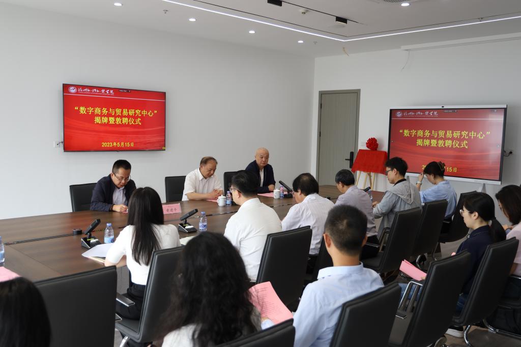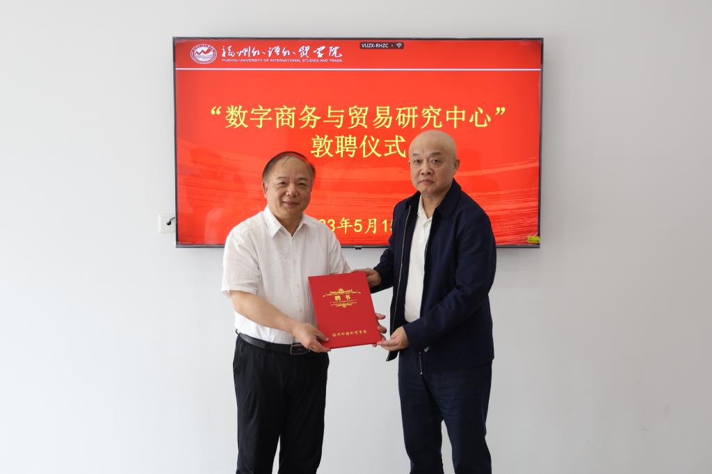 活动中,黄建忠和许明共同为“数字商务与贸易研究中心”新型智库揭牌,黄建忠教授正式受聘智库首席专家。