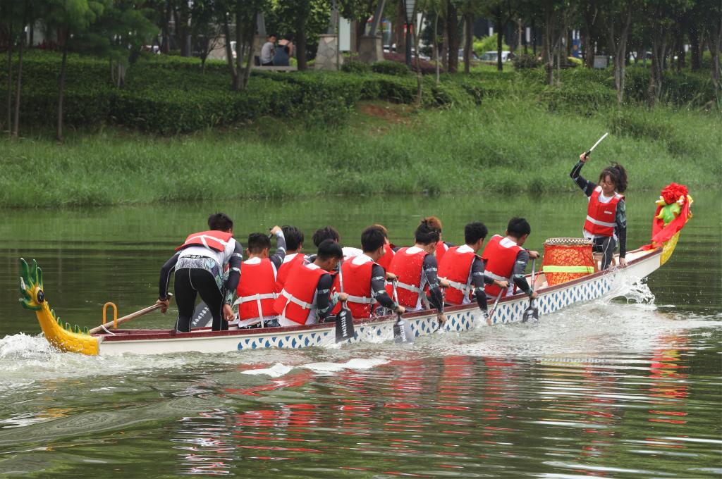 许明表示,端午节是我们的传统节日,赛龙舟是端午节最重要的节日活动。学校龙舟队健儿们精神抖擞、斗志昂扬,彰显着福外人不惧挑战、敢拼会赢的精神风貌。他希望龙舟队的运动员们在比赛中勇往直前,创造辉煌,展现福外人的风采,扩大学校的影响力。