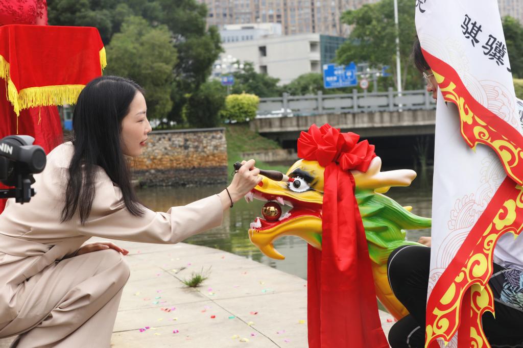仪式中,许明向龙舟队授旗并为龙头披红,吴新星为祥龙点睛,祝愿风调雨顺,国泰民安。现场的中外师生们激动欢呼,来自摩洛哥、利比里亚的十余名国际学生纷纷表示第一次近距离见到端午节的龙舟,深刻感受到了中国传统文化的魅力,是一次难忘的体验。