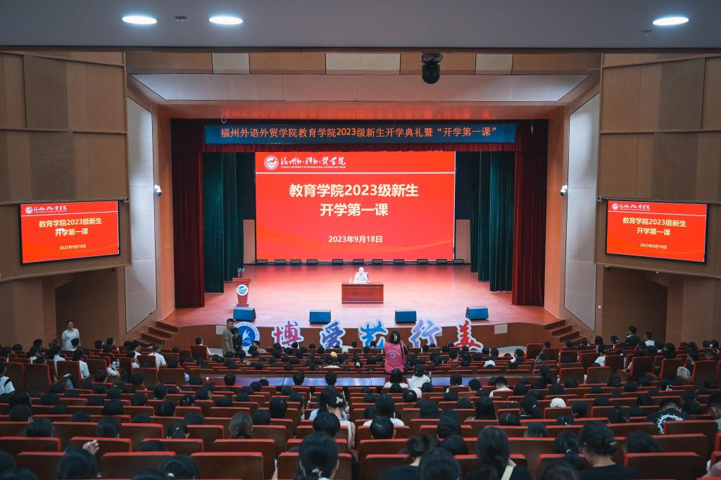 9月18日下午,校长、博士生导师许明教授在博雅音乐厅为教育学院2023级全体新生讲授“开学第一课”。